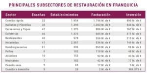 Dentro del ámbito de la restauración en franquicia, destacan por su nivel de facturación los sectores de Comida Rápida, Italianos y Pizzerías y Cervecerías y Tapas.